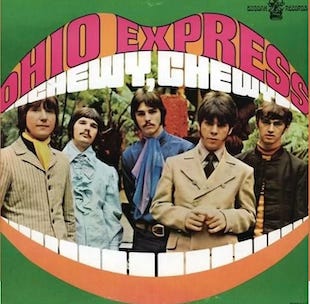 The song of that title, by a “band”1 called The Ohio Express®, was about the worst of the bubblegum era, IMHO. There, I got that off my chest. [But what did I really expect from the misguided and too-slick crowd that cranked out “Yummy, Yummy, Yummy?”2 I don’t care if they were both million-sellers.]